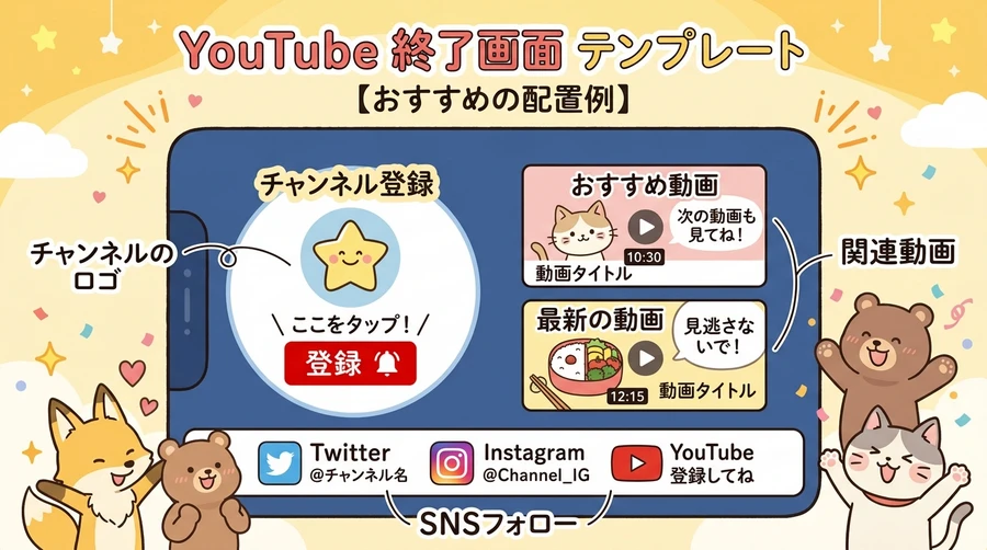 アウトロ(終了画面)は、視聴者に次の行動を促すための重要なセクションです。YouTube Studioでも設定可能ですが、FlexClipを使うことで、より高度なデザインと「登録」への誘導が可能になります [1]。