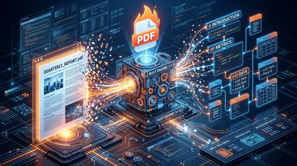 Fire-PDFの最大の特徴は、その圧倒的な処理速度にあります。以前のエンジンと比較して、解析スピードは3.5倍から最大5.7倍へと飛躍的に向上しました 。この驚異的なパフォーマンスを支えているのが、システムプログラミング言語「Rust」による再実装です。Rustはメモリ安全性と並行処理に優れており、大量のドキュメントを同時に、かつ極めて低いレイテンシで処理することを可能にします。平均的な処理時間は1ページあたり400ミリ秒未満という、従来の常識を覆す数値を叩き出しています 。