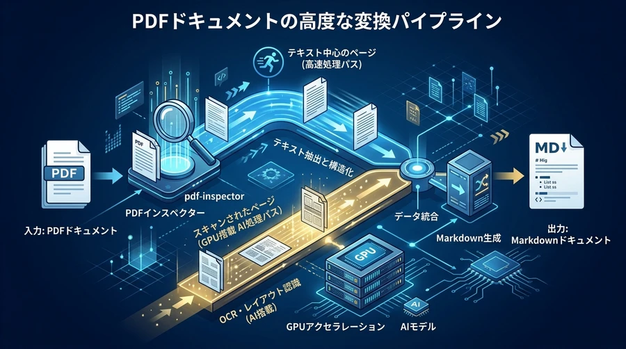 | 抽出(Extraction) | GLM-OCR / ネイティブ抽出 | テキストページは即座に、スキャンページはAIモデルで高精度に抽出する |
