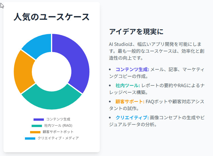 本ガイドを最後まで読めば、単なるツールの使い方だけでなく、これらの新機能を使ってアイデアを具体的なAIアプリケーションとして形にするまでの一連の流れを、明確に理解できるでしょう。2025年、AI開発のスタートラインは、まさにこのGoogle AI Studioにあります 。