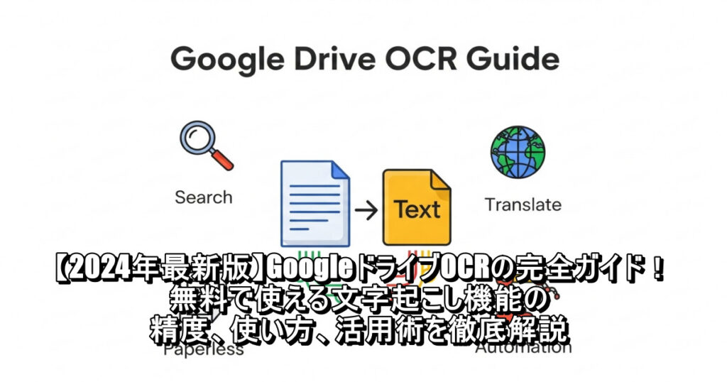 さらに、この機能はより大きな文脈で捉えることができます。それは、デジタルトランスフォーメーション(DX)への入り口としての役割です。従来、高価な専門ソフトウェアが必要だった文書のデジタル化というDXの根幹をなすプロセスを、GoogleドライブのOCRは無料で提供します 。これにより、個人や中小企業でも、コストをかけずにアナログ情報をデジタルデータへと変換し、業務効率化の第一歩を踏み出すことが可能になります。この記事では、この強力な無料ツールの基本から、その真の実力、そして未来の可能性に至るまで、初心者にも分かりやすく徹底的に解説します。