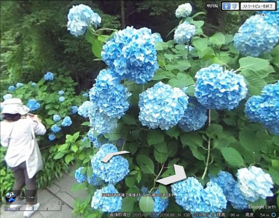 下記は、鎌倉にある明月院のアジサイがどうなのかを見るために、ストリートヴューで内部を見た一コマで、撮影されたのが2015年6月のものですが、綺麗に咲いていることが分かります