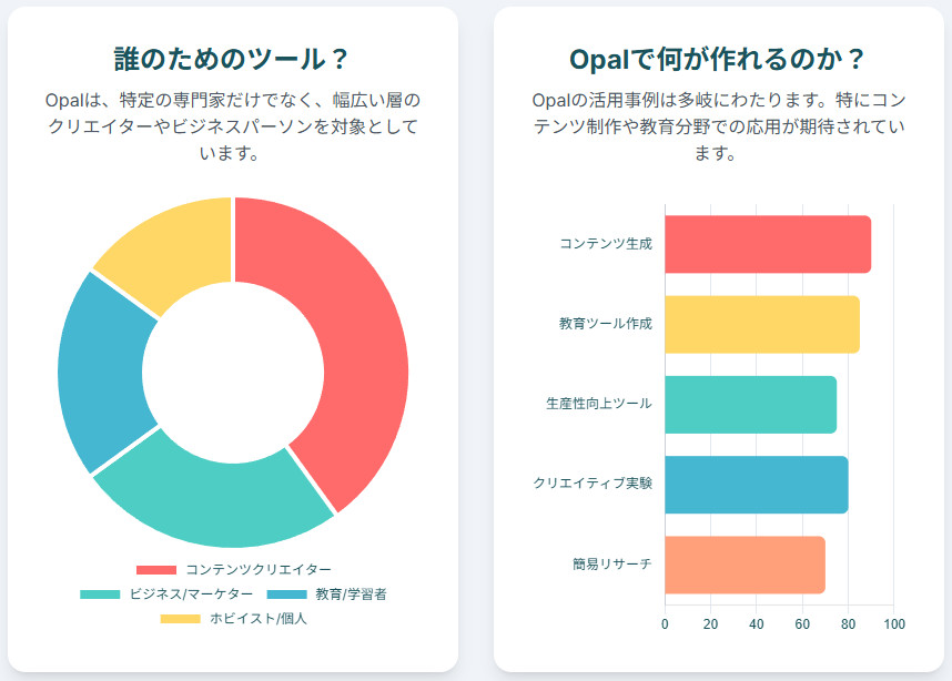 - 創造性の民主化とアクセシビリティ: 多くのユーザーが、Opalの直感的でクリーンなインターフェースを称賛しています。これまでプログラミングの壁に阻まれてきた非技術者が、自分の手でツールを創造できるようになったことへの興奮が伝わってきます 。