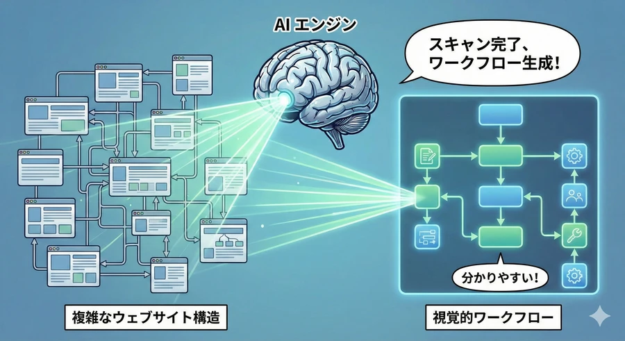 3. ワークフローの微調整: 生成されたワークフロー(クリック、ループ、抽出などの一連の動作)をプレビューし、必要に応じて不要な項目を削除したり、名前を変更したりします 。