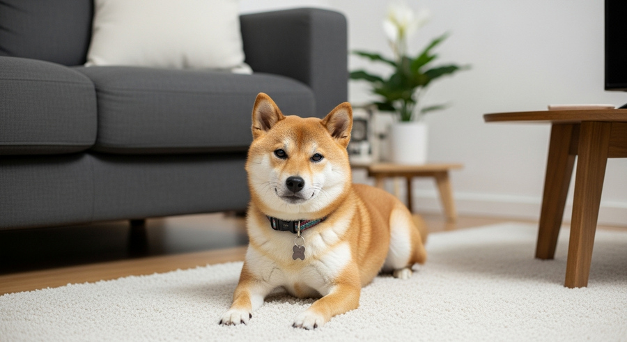 愛犬の写真を元に、その愛犬が主人公の短編アニメーション映画を作ってみましょう。下記がWhisk AIで作成した「リビングでくつろぐ柴犬の写真」です。この画像を添付して作成してみます。