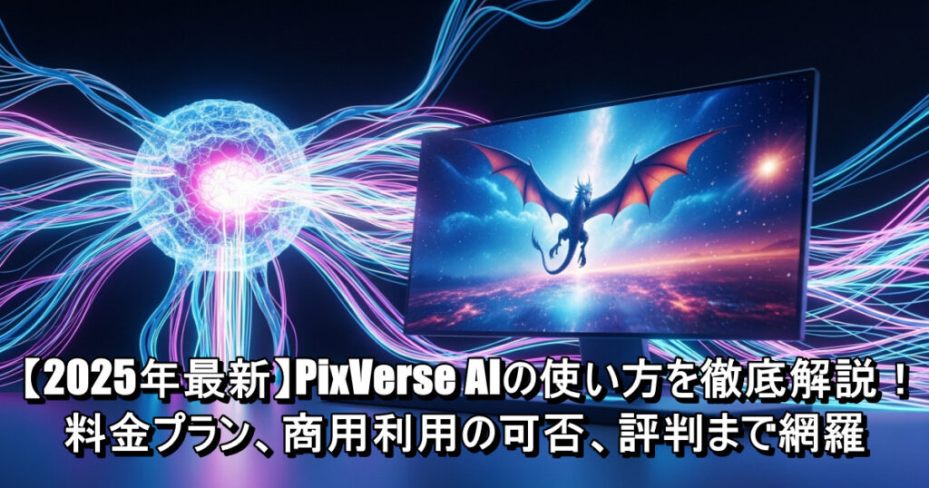 この記事では、2025年最新版のPixVerseについて、その進化した新機能から、初心者向けの基本的な使い方、料金プラン、そして最も重要な「商用利用の可否」まで、あらゆる情報を網羅的に解説します。これからPixVerseを始めてみたいと考えている方は、ぜひ本ガイドを参考に、AI動画制作の第一歩を踏み出してください。