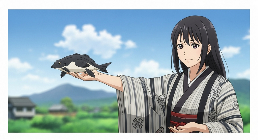 この画像に対して、「Clouds drift across the sky, A carp leaps from the hand.」と入力して生成した動画は以下の通り。