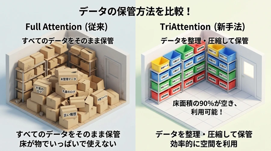 AIの「記憶の壁」を突破する!TriAttentionが導く、賢くて高速な次世代人工知能の仕組み